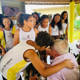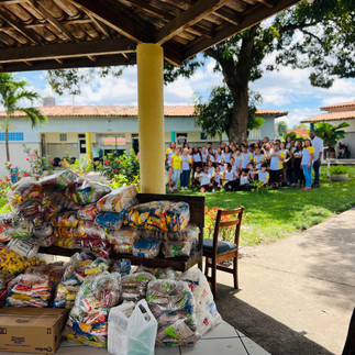 Nesta sexta-feira a Escola Joias de Cristo, dentro das atividades do projeto CHAVE Joias, levou seus alunos para um encontro especial com os idosos do Lar do Carmo, em Dias D’ávila. O evento envolveu não só a entrega de alimentos, mas também momentos de socialização, diálogos inspiradores, a leitura de cartas cheias de carinho escritas pelos alunos, e uma animada sessão de dança que trouxe muita alegria para os presentes.